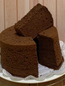 I made a Chocolate Cipon (Chiffon) Cake  2 days ago. This cake is usually very difficult to make, even compared with common Chiffon Cake.  Anyway, Cipon is my own naming on this cake. It’s like Chiffon but much more moist and a bit ‘sweaty’ inside the cake. So, it’s not just fluffy, but very-very moist and even if I add more baking-time, it’s still ‘sweating’ when the cake is in room temperature.